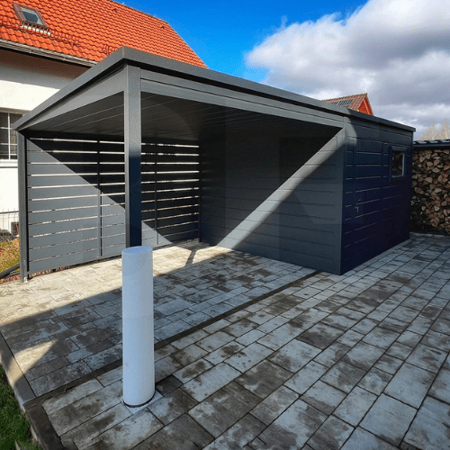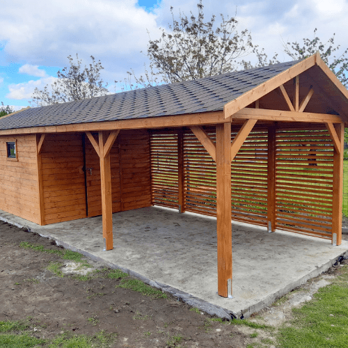 Wiaty samochodowe z domkiem narzędziowym – praktyczne 2w1